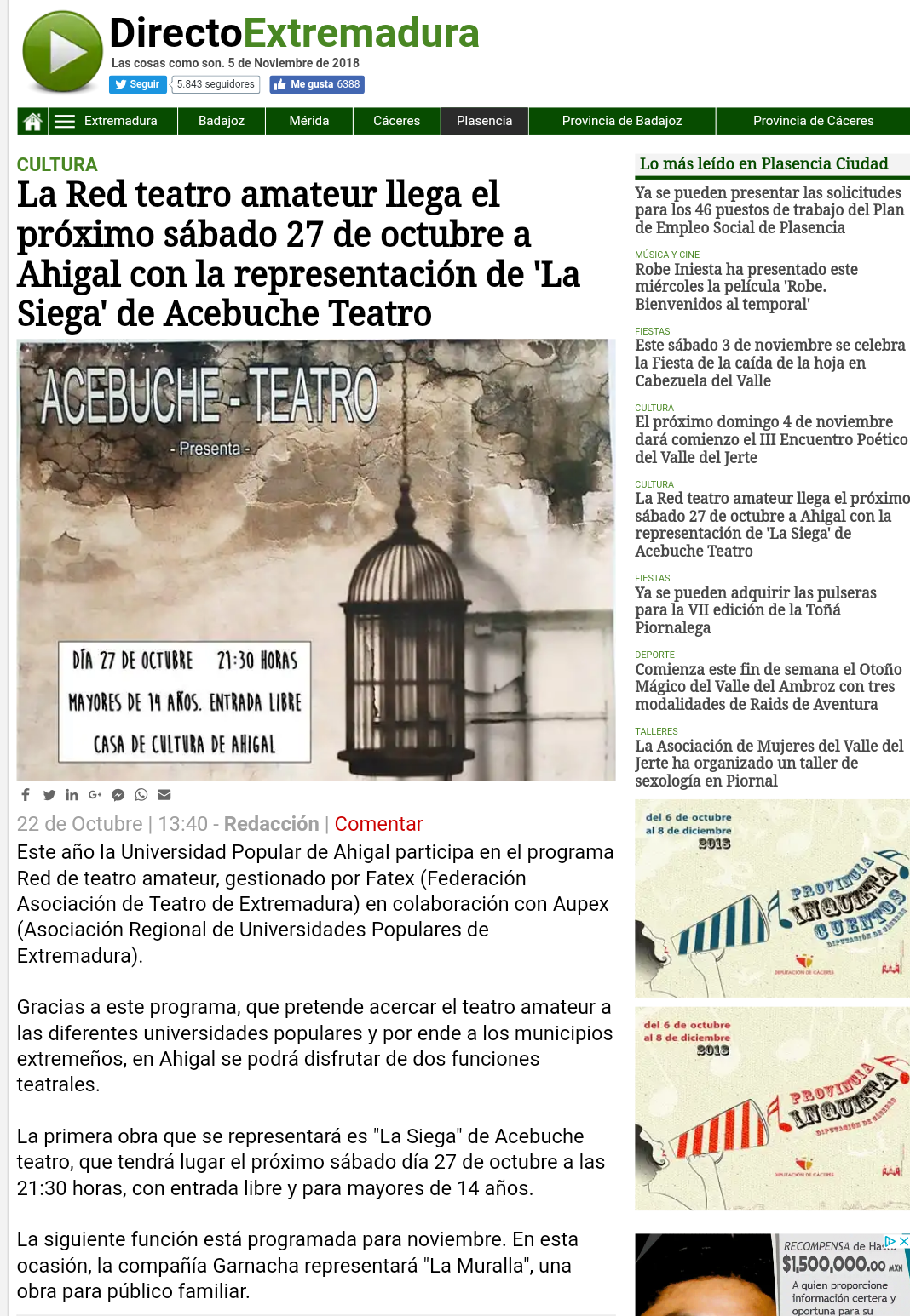 Post relacionados con la obra LA SIEGA, último trabajo de ACEBUCHE-TEATRO.